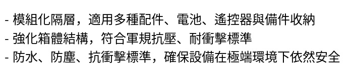 - 強化箱體結構,符合軍規抗壓、耐衝擊標準