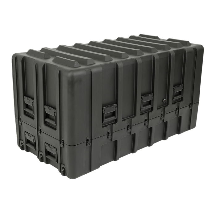rSeries 軍用標準箱體的設計符合最嚴格的軍用規格。它們採用抗衝擊/抗紫外線的 LLDPE 滾塑成型,堅固耐用,並採用防水結構,配備堅固的不銹鋼閂鎖和鉸鏈,可承受最嚴苛的運輸條件。