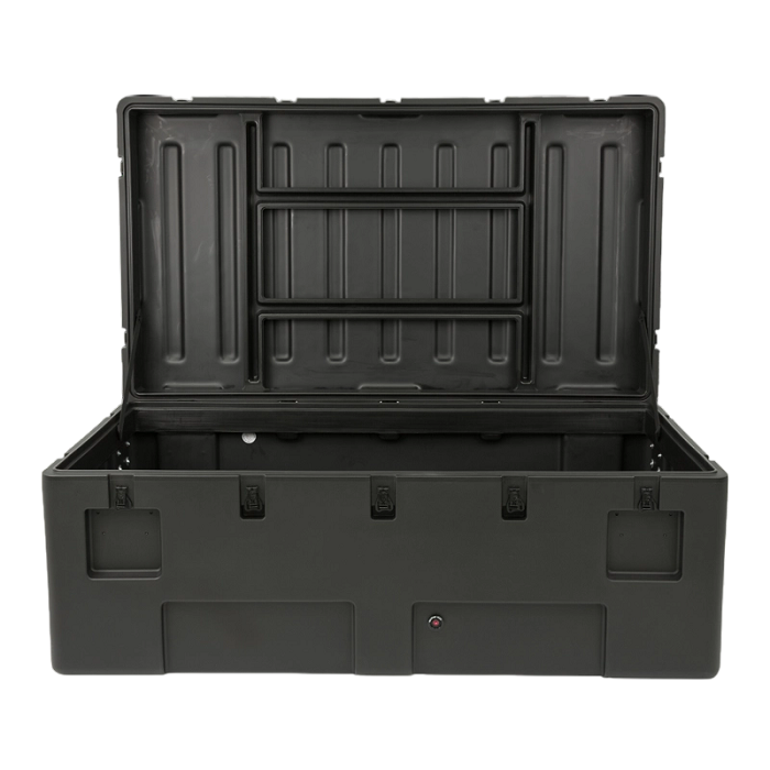 rSeries 軍用標準箱體的設計符合最嚴格的軍用規格。它們採用抗衝擊/抗紫外線的 LLDPE 滾塑成型,堅固耐用,並採用防水結構,配備堅固的不銹鋼閂鎖和鉸鏈,可承受最嚴苛的運輸條件。