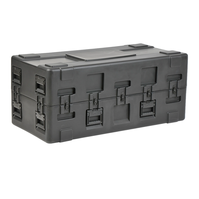 rSeries 軍用標準箱體的設計符合最嚴格的軍用規格。它們採用抗衝擊/抗紫外線的 LLDPE 滾塑成型,堅固耐用,並採用防水結構,配備堅固的不銹鋼閂鎖和鉸鏈,可承受最嚴苛的運輸條件。