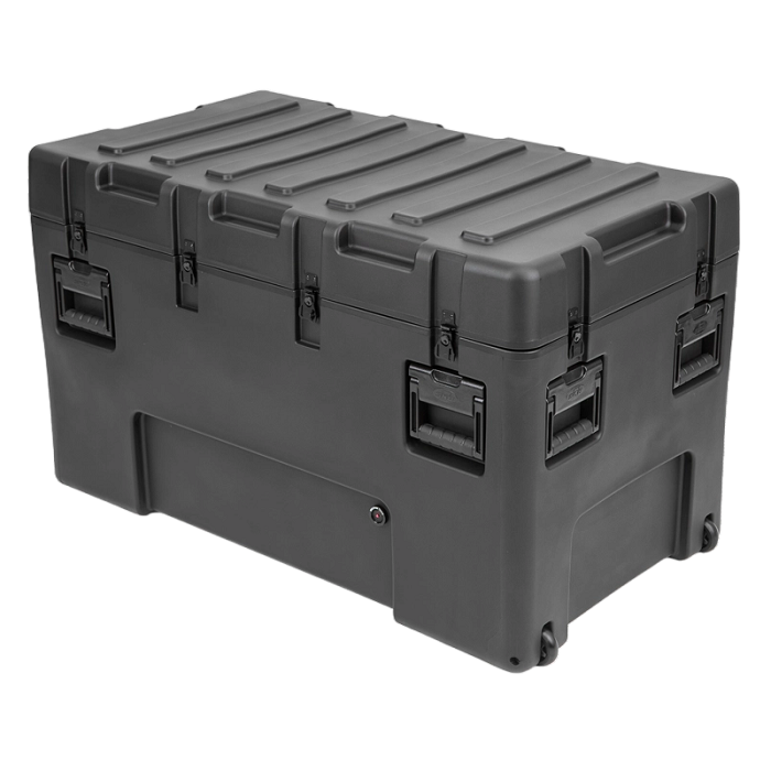 rSeries 軍用標準箱體設計符合最嚴苛的軍用規格。它們採用抗衝擊/抗紫外線的線性低密度聚乙烯 (LLDPE) 滾塑成型,堅固耐用,防水結構,配備堅固的不銹鋼閂鎖和鉸鏈,可承受最嚴苛的運輸條件。