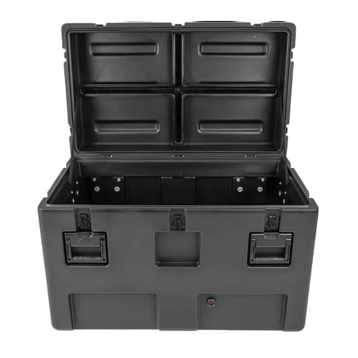 rSeries 軍用標準箱體的設計符合最嚴格的軍用規格。它們採用抗衝擊/抗紫外線的 LLDPE 滾塑成型,堅固耐用,並採用防水結構,配備堅固的不銹鋼閂鎖和鉸鏈,可承受最嚴苛的運輸條件。